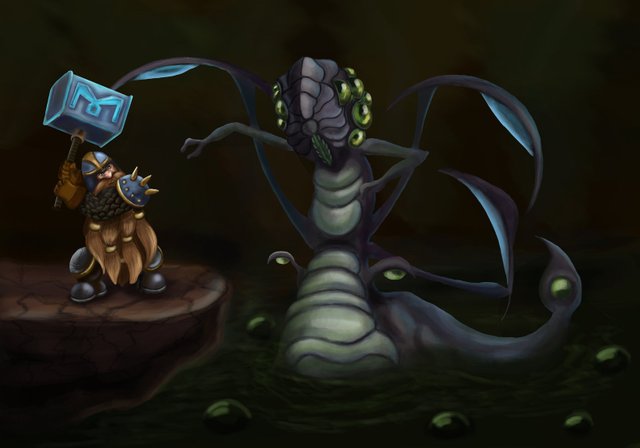Anyway, during my digital classes I had to create a scene with background and several characters. It was long ago, and I decided to create WoW fan art. The required condition was to create the characters from shapes, and they looked like this: