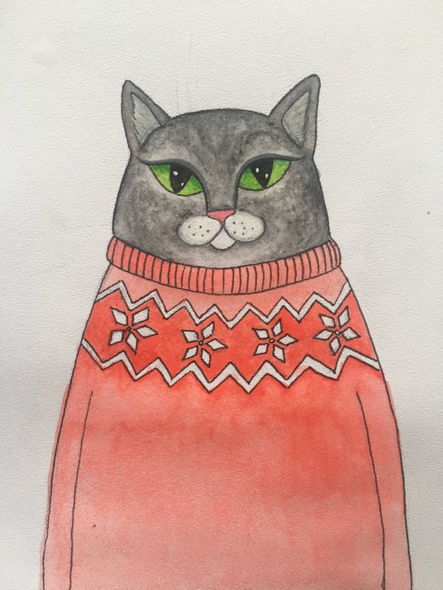 Another cat in a traditional winter sweater. Do not forget to dress warmly, all the same winter!
