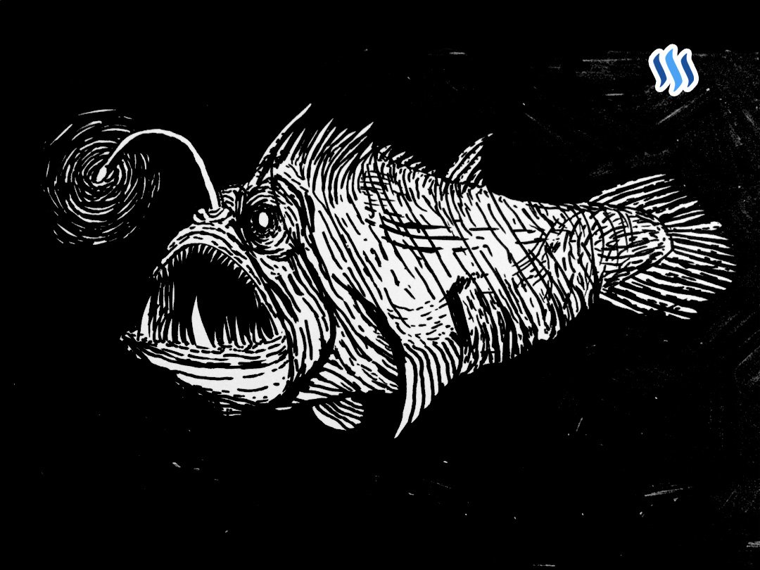 Oh man this is so cool, I did NOT see the Steemit logo in there at first but I DID see a super awesome anglerfish! I am absolutely fascinated with the depths of the oceans, and we know so little about them. My son (almost 3 years old) can rattle off the names of various deep sea denizens as fast as he can name farm animals :) This is a wonderful drawing, almost has a woodcut feel. The hidden Steemit logo is just the icing on top. Thank you so much for sharing this with me! You rock!