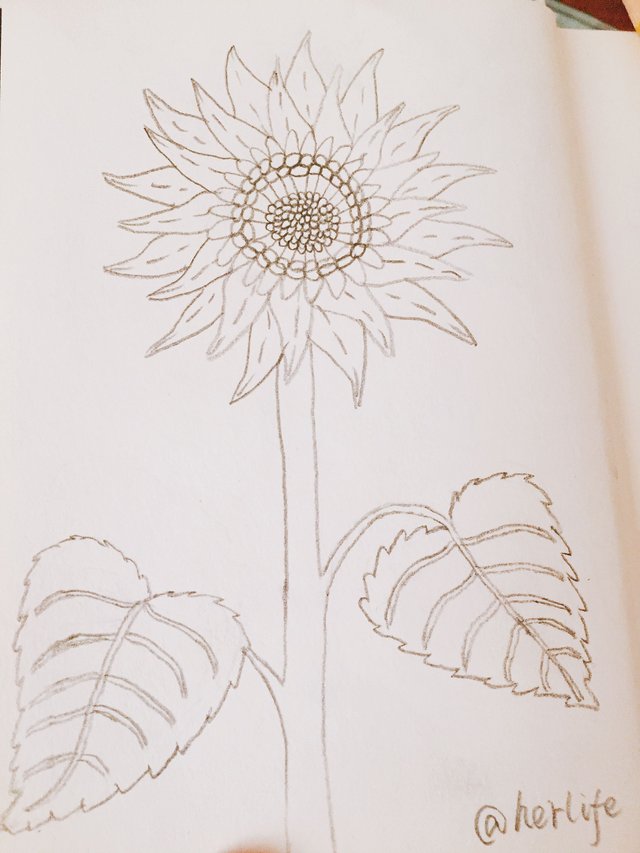 画的很认真呢,我也喜欢向日葵,有机会也要画一个。谢谢@herlife 分享哦!