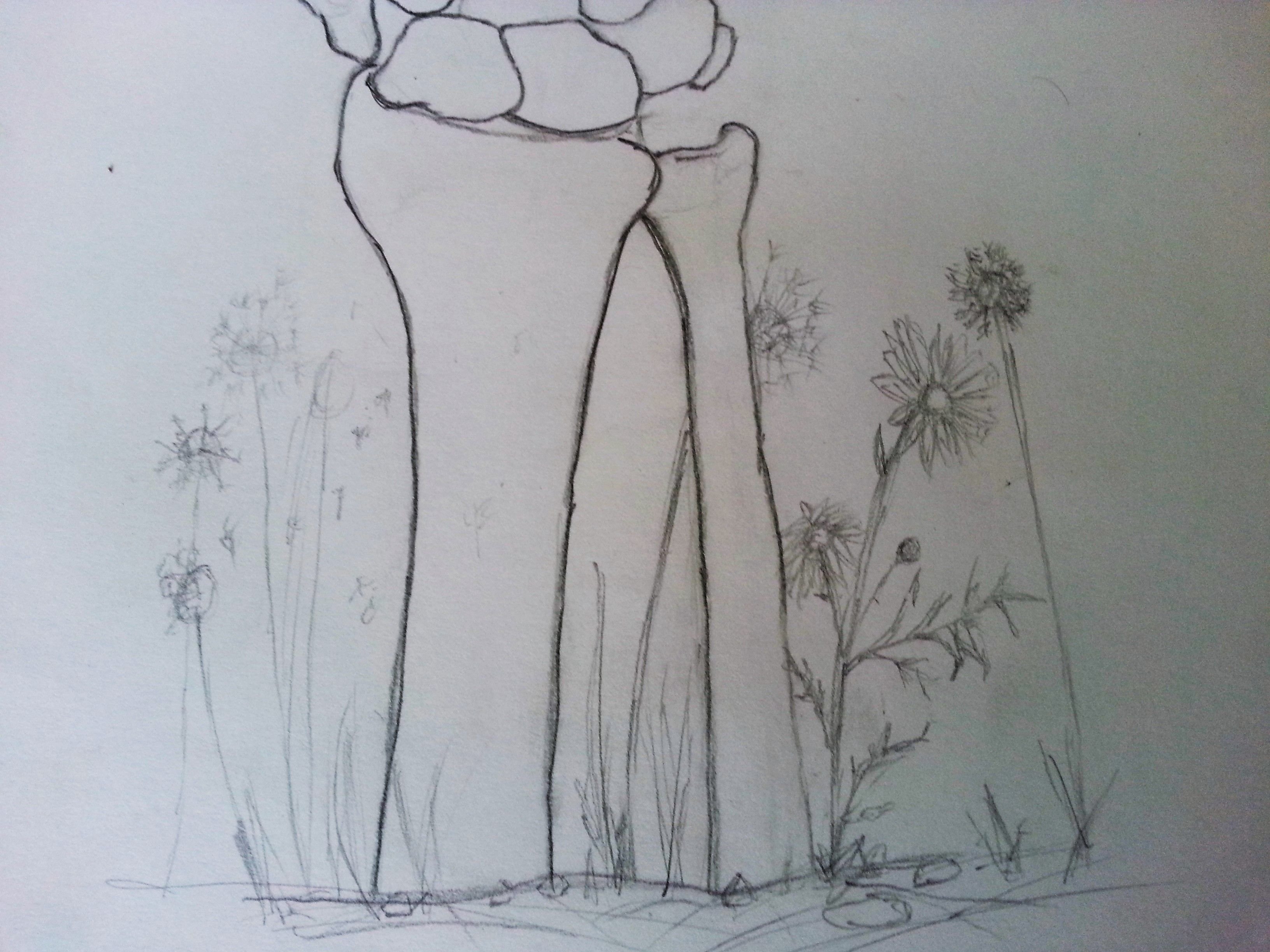 The plants where supposed to be daisies and dandelions but then I realized that there was no yellow pen and the dandelions where hard to draw. So, i just colored the plants something that has bright color that why its is looking so orange. I have no idea what plant this is at this point.