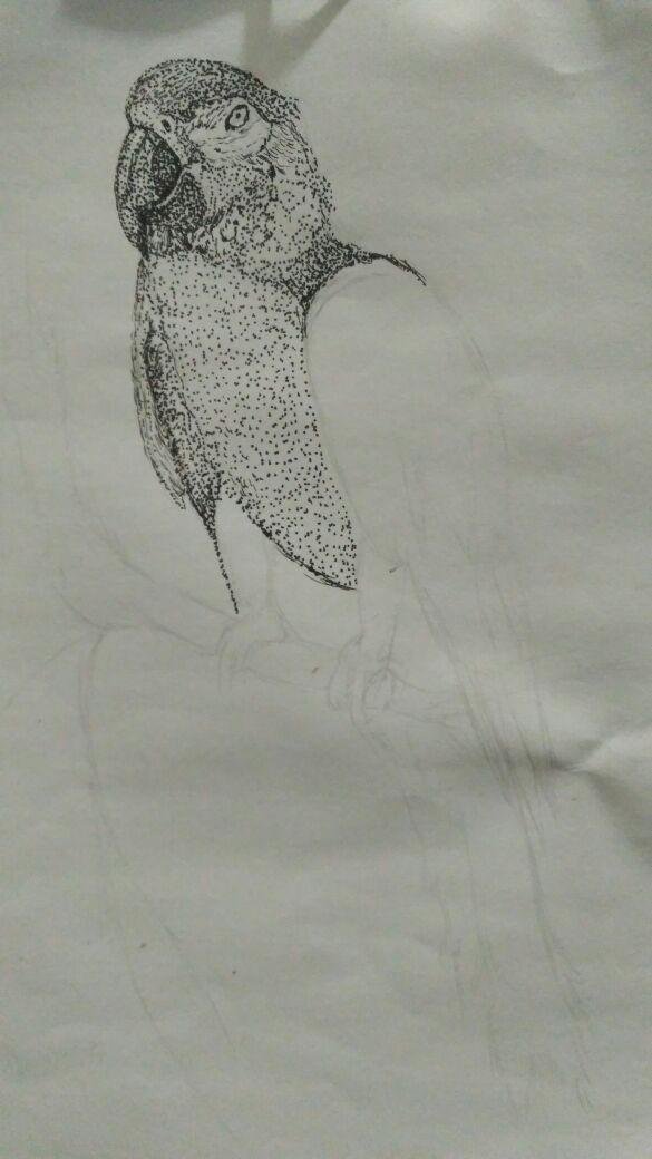 So in the parrot contest I try to join again. I drew the parrot with the pointillism technique used drawing pen in the paper sized 20x30 cm. I spent 10 hours for this one.
