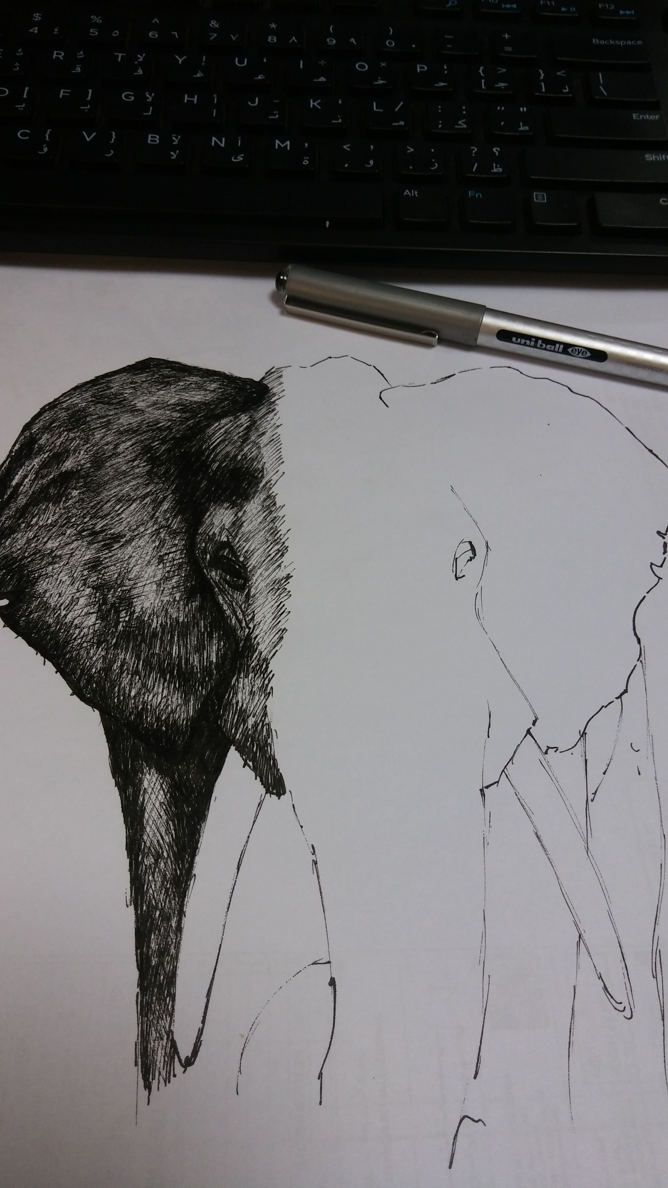 In this drawing I used pen and ink method and draw the subject on A4. I did this during my free time at work that is why I used pen. I just focused on the elephant itself and giving the ivory tusk white so it superceeds and serves as a focal point or a point of interest. And I did this an hour after lunch.