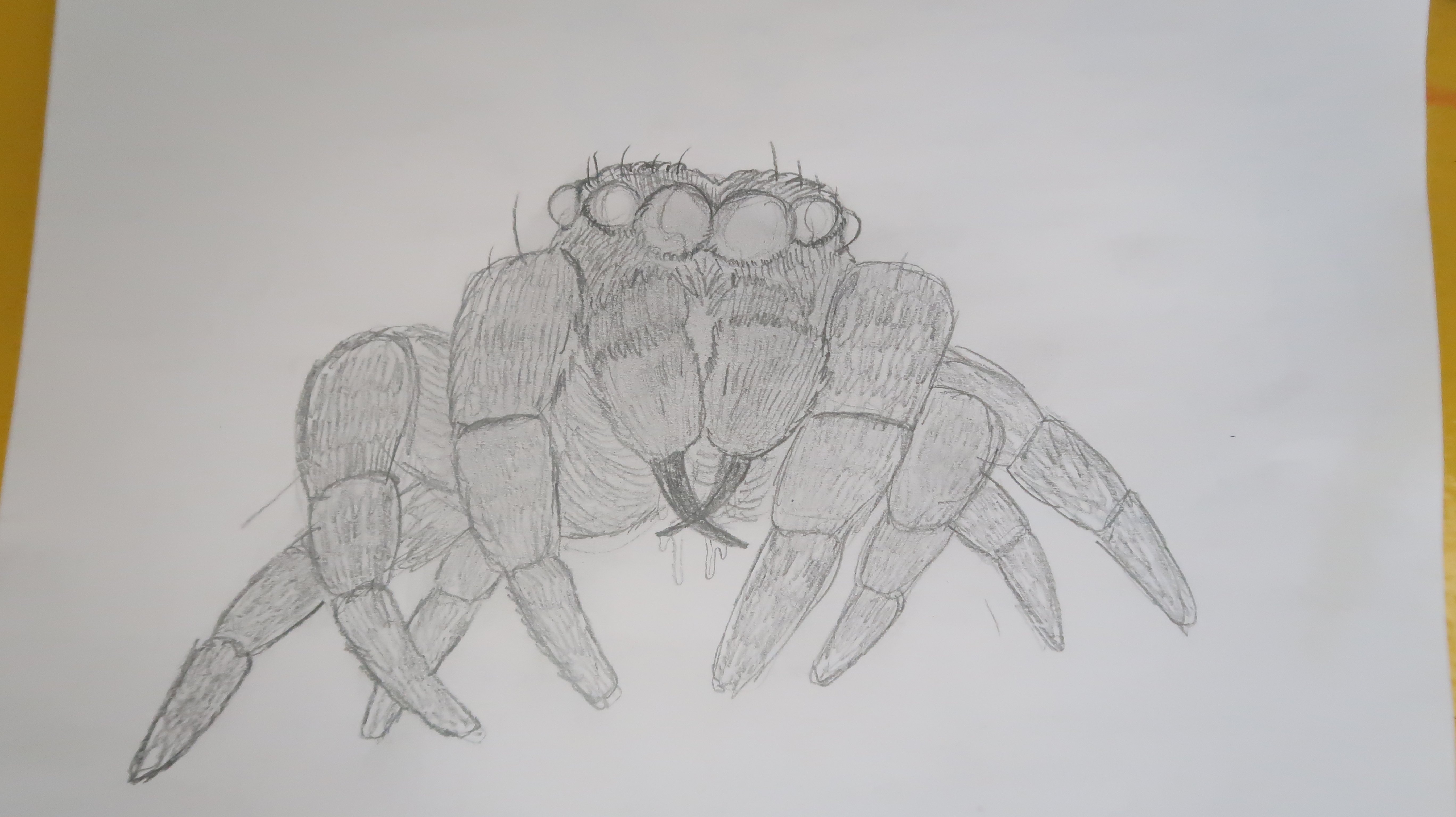Great rendition of a spider! I'd never have the courage to look at one to use as a reference. The eyes creep me out hehe Keep up the great work!
