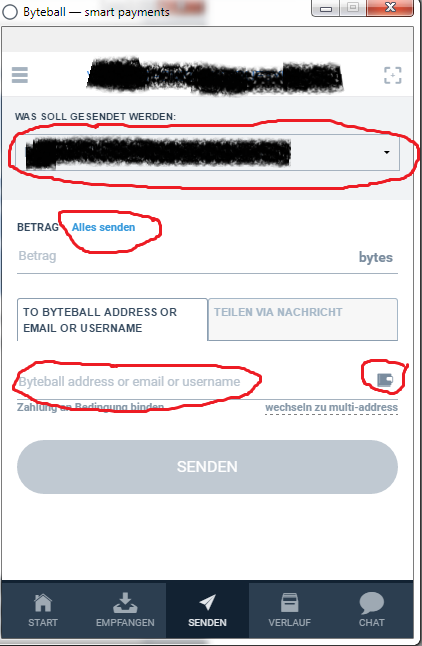 Then choose the currency/amount you want to sent and click on "Send all" (minus fees) and enter your main wallet as receiving adress (click on the wallet button to insert your adress without typing).