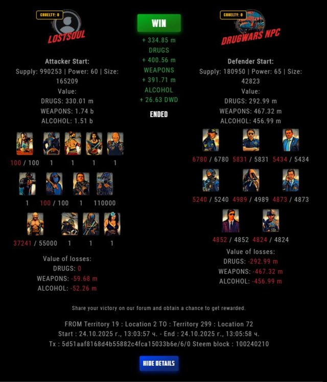 Check my latest fight ! lostsoul vs The Govermentstefannikolov (67)in DrugWars • 10 days ago #drugwars-fight #gaming #fight #dw