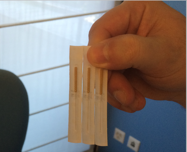 These are the needles that he "plunged" into my calf. I'm pretty brave don't you agree?