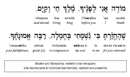 Here is a traditional morning prayer that has been said for many years. Normally in English we say "For my family and for food and money, etc. but in Hebrew the prayer is more focused on who God is and what he does for us, which is rarely thought about by the average religious person.