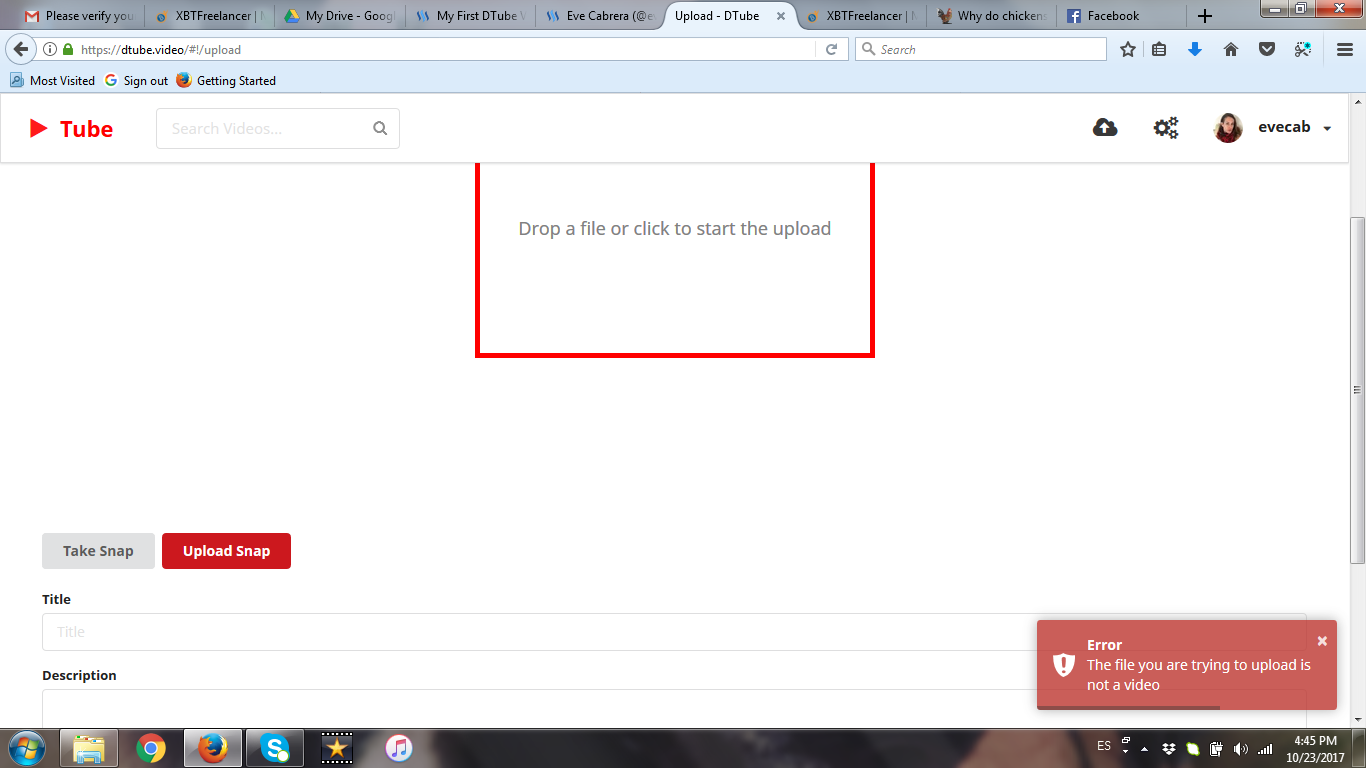 I've been desperately trying to upload a video on dtube.video, but it always fails. I always get the following error message: