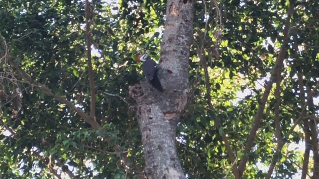 Look at these Pileated Woodpeckers that were in my backyard. (Click on the picture above to see the video). I have a tree that is dying in my yard and the woodpeckers love to make holes in it. These woodpeckers are very big, they can get up to almost 20 inches in length. This is the woodpecker that was the inspiration for the cartoon Woody Woodpecker. I don't even need to cut down this tree, they will bring it down piece by piece.