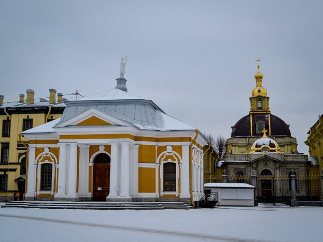 In front of the Peter and Paul Cathedral is a small building - this is a boat's house, created specifically for storing the boat of Peter the Great.