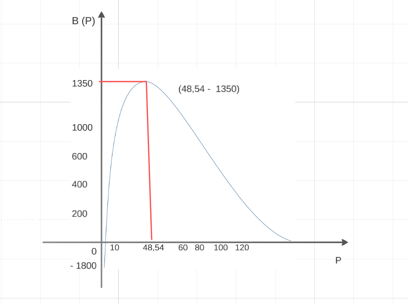 B = - 60 - 60 ²-4 (2 (-1800)) / (-2 (2)) we take the option with the sign (-); since, the result gives: positive (-/-=), or also we can say, it is a reached maximum, since the coefficient in P ² is negative.