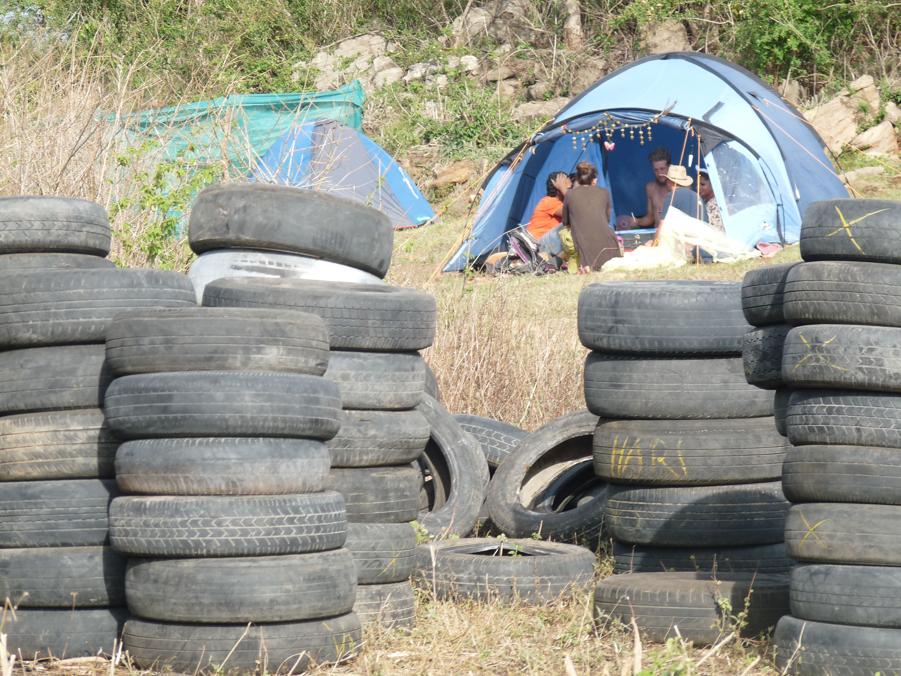 Most of the volunteers were busy settling in, and setting up their tents. There was only one small shack on the Ashram which housed the kitchen and two small rooms where Amitram and I stayed. Whilst I sat on my bed in deep thought, Yoga came and explained to me that there was a problem. The government water lines had been stopped due to some problems, and they had just a few thousand liters of water in the tank. It would probably just be enough for building work, but we wouldn't have enough for drinking water or indeed to wash! I let that sink in. Pounding tyres with dirt all day long in the heat and dust is dirty work! The thought of not being able to wash, and indeed all the volunteers too was something that I really hoped would be OK. I really wasn't sure if people would stick it out like this! The drinking water was easy to solve, as we just bought large drinking water containers.. but the washing was going to be another issue!