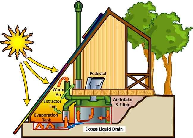 It was like an oven, a solar oven is what it was. The way it worked was there was a toilet seat on it, I mean that's really all it was... but we had this device in here where it's smeared it and made it thin so that the Sun would dry it within 40 minutes or something and turn it to ash. I actually took a mayonnaise jar full of this ash and and put water in it and took it to the water testing place and they tested it, and it was benign of any bacteria.