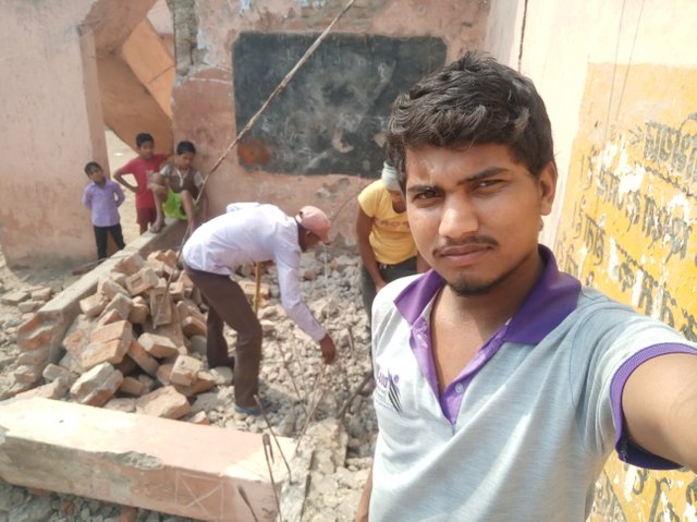 Well, this building is too old that's why government wanna make a new one. So here some worker breaking this building.Actually, my relations are workers here. So I am also little-bit helping him. One more thing I love physical work because when we do physical work then we get tired too much that time when we go in bed. After few we get sleepy and we go in-depth sleeping. Physical work is also good exercise. When we do like this work then we don't need to go for morning jobs.