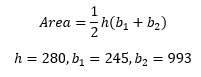 Write a code that finds the area of a trapezoid with the given values. The formula and values: