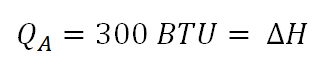 Change in enthalpy is equal to 300 BTU.