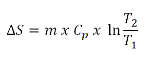 As for this portion of the problem, the change in entropy (delta S) can be easily obtained by direct substitution of all the needed parameters especially in this constant pressure process of change in state. And the computation goes like this: