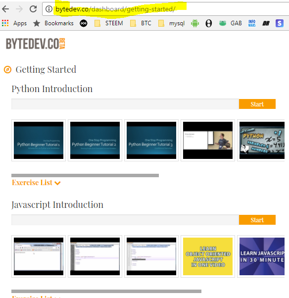 Once you are logged into Bytedev Academy your are greeted with your user dashboard and the first two intro classes mentioned in the podcast, Python and JavaScript coding.
