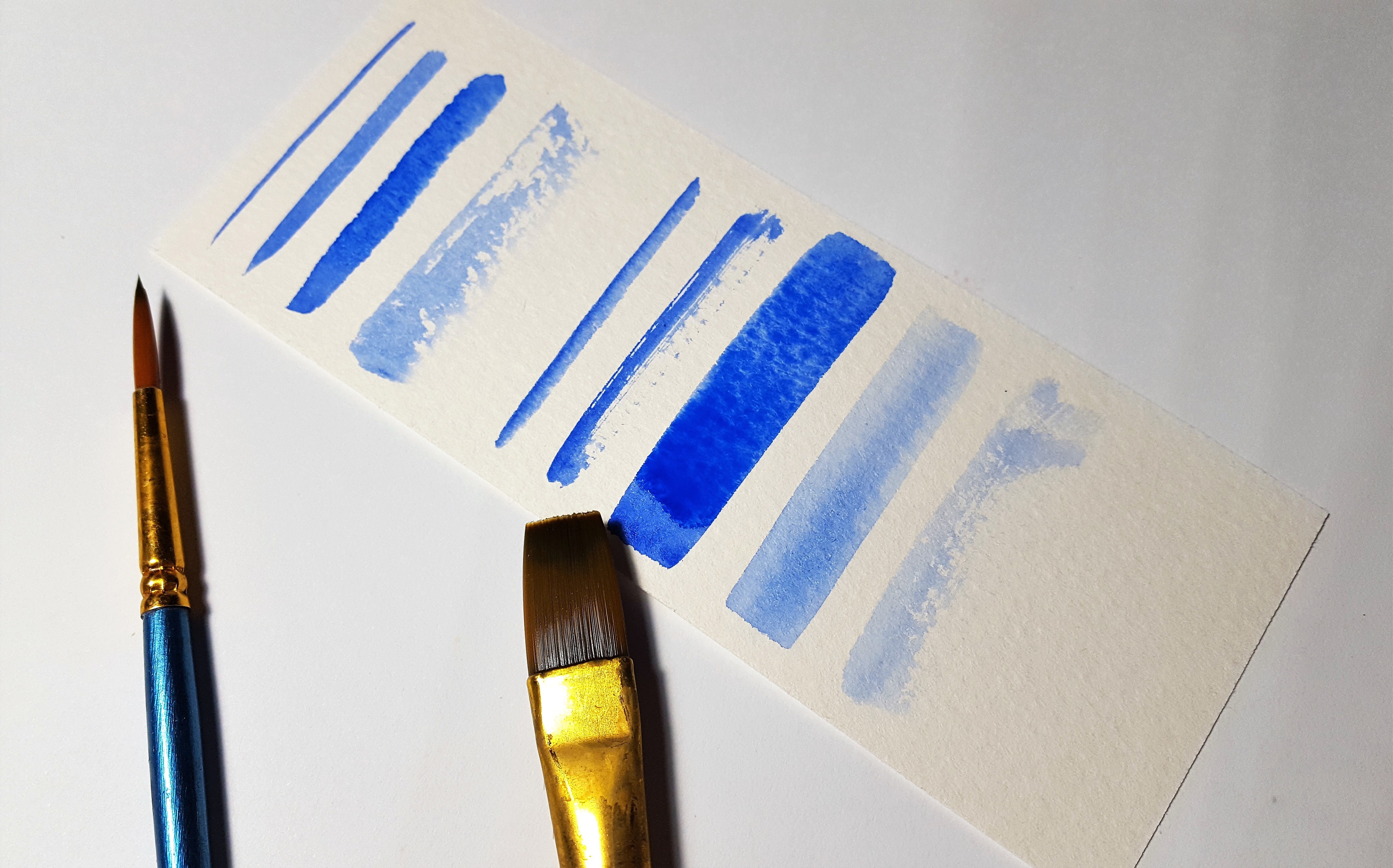 Now try different brushes. It is good to use one color for it. Use different pressure, hand tilt and water amount. You will get various lines which can be used in different situations.