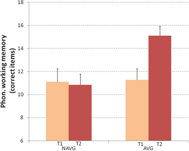 Although children and adults with dyslexia can also exhibit visual working memory deficits51, working memory is generally found to be impaired in the auditory-phonological domain5, 6. Given the proposed visual mechanisms underlying AVG effects, one would predict such training to be more efficient in dyslexic individuals with pronounced deficits in visual attention and perception, with little or no benefit in phonological processing and memory deficits. However, as demonstrated by Sperling et al.33, in languages with deep orthography, attentional deficits in dyslexia are expressed by a difficulty in extracting information from the surrounding perceptual noise. Moreover, AVG training could improve the domain-general learning mechanisms involved in perceptual noise exclusion both in the visual and auditory modalities, together with their multisensory integration26, 45, 48, 52, 53.