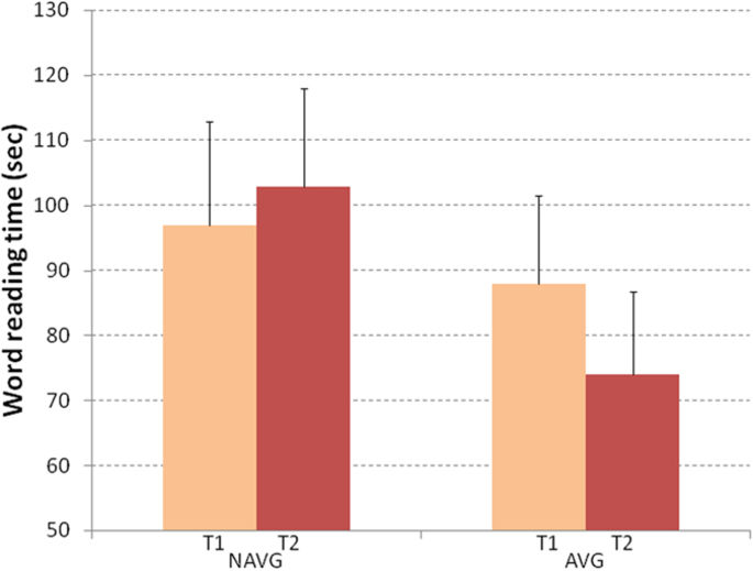 All reading performance of participants were recorded and time and errors were coded by native-english speakers. The experimenters were blind regarding the participants’ allocation to AVG or NAVG group.