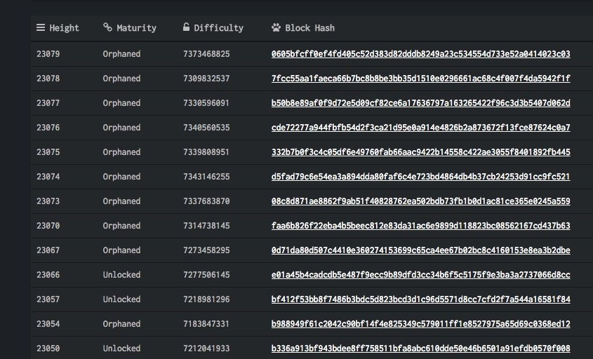 So today I ran into this one on the ETN Network. A huge amount of orphaned blocks. Time to explain what stale and orphaned blocks are on the chain.