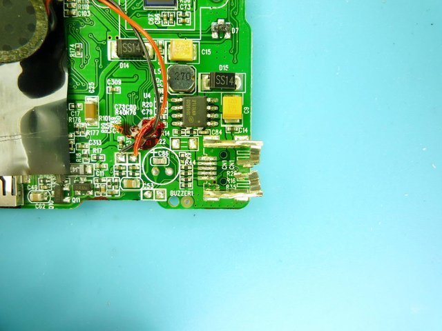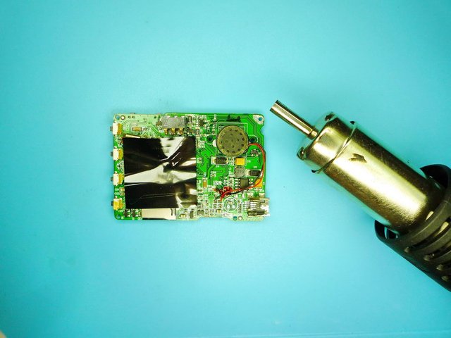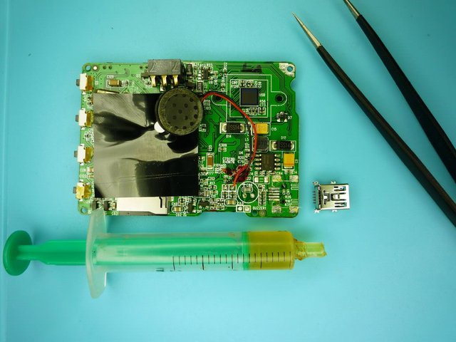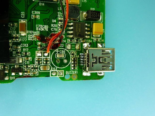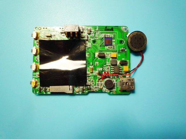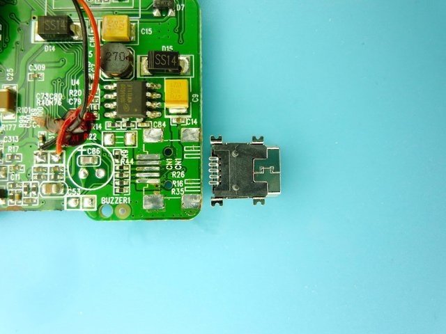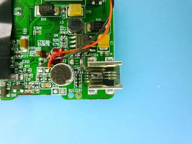 On the next step, I took out the management board. A microphone is visible near the miniUSB connector, and a speaker is soldered slightly higher.