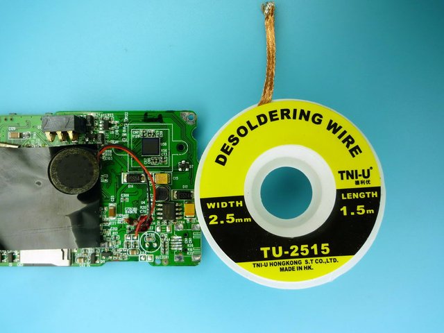 Before installing the new connector, I used a desoldering wire to remove residual solder.