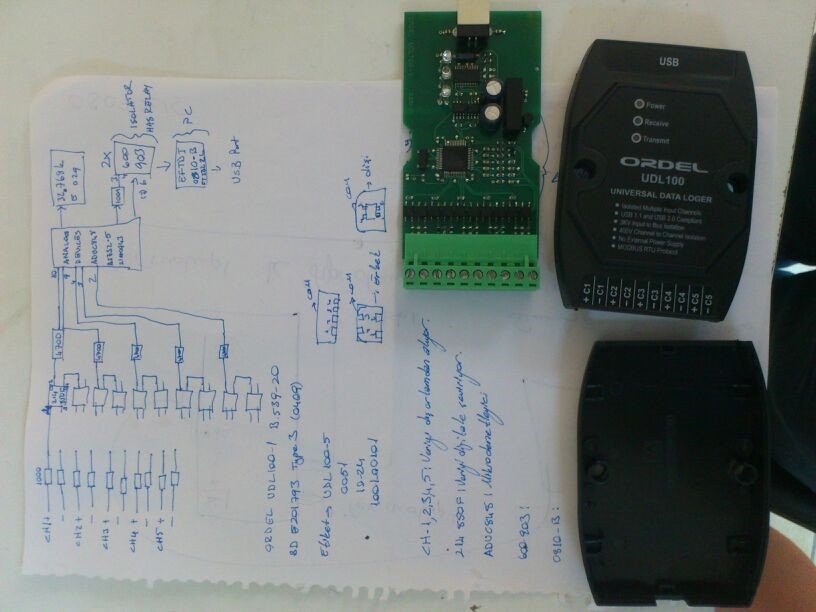 Şirketteki cihazın içinde iki ayrı modül bulunmakta ve birbirinden bağımsız aynı modüllerdir. Bugün incelemiş olduğum tek modülü açıklayacağım, her girişte birer ADC ve bunların bağlı olduğu mikroişlemci bulunmakta, ve çıkışı da USB portuna yönlendirilmiş. İncelemiş olduğum bu model benim için yol gösterici oldu ve yaptığım araştırmalar sonucu kendime ADC ve mikroişlemci edinmem gerektiğini farkettim.