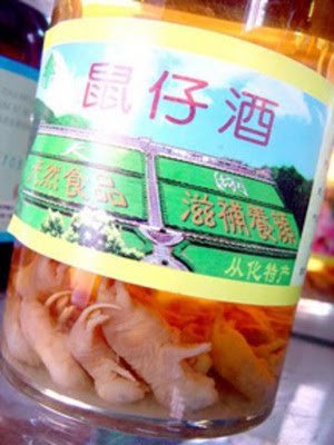 Another concoction with surprise. Because as everything is eaten, in the Far East everything drinks. This explosive cocktail, unworthy for a first date, is actually another weapon against any disease imaginable, and is prepared in a kind of rice whiskey, in which a breeding mouse (maximum three months) is allowed to ferment for one year. Ah! To take effect, the vermin must drown itself alive.
