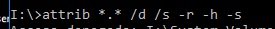 5.- After that we must write the following code that will modify the attributes of the files that the virus had already modified: "attrib *. * / D / s -r -h -s" can be copied without the quotes, we press Enter, we wait a few seconds until the cursor shows us again the letter of the unit and with this we can go back to it and search the files.