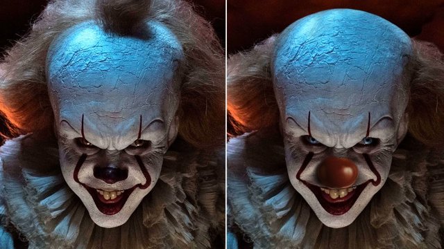 King also describes him as having yellow eyes, and reminds poor Georgie of Bozo the clown. He's later compared to Ronald McDonald for his painted-white face and massive smile, and in addition to his long, sharp teeth, he's also mostly bald, except for an orangish-red tuft of hair on each side of his head.