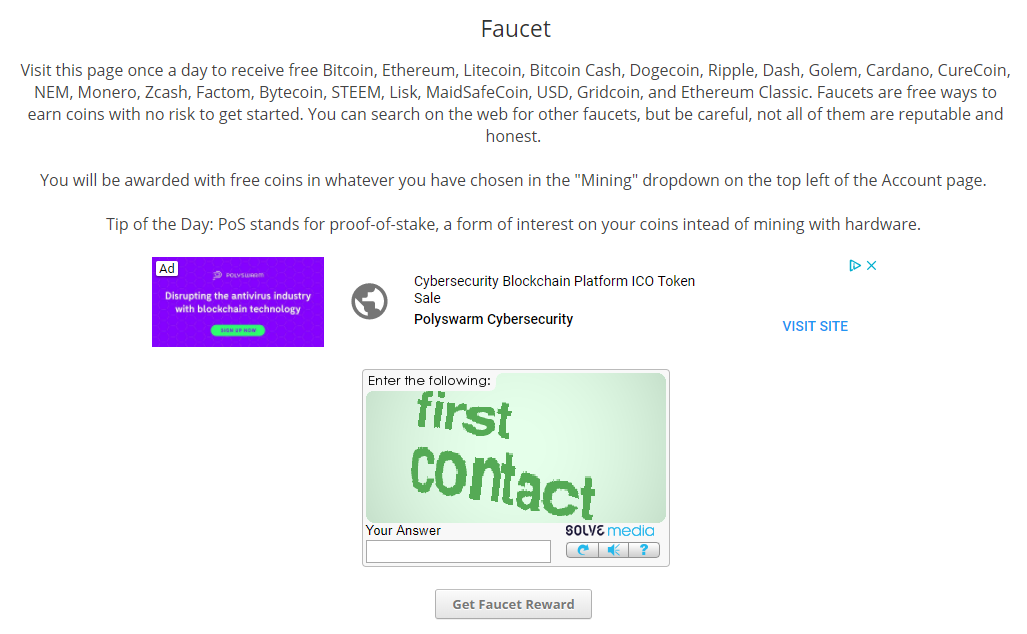 So besides mining there is also a faucet option in eobot. Go to the faucet.