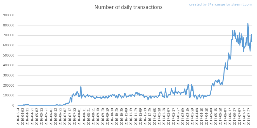 While he is criticizing that 100k TPS is unrealistic dream, he'd better to look at current realistic numbers. Ethereum's all-time-high TPS is 3.7 (3176,788 txs per day), but Steem is over 9.3 TPS (over 800,000 txs per day). Look at the follow charts (be careful to read that y-axis numbers).