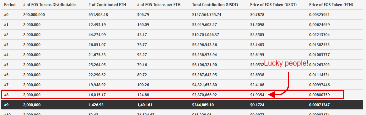 Buyers in Window #8](https://steemit.com/eos/@cryptoblood/eos-window-8-now-underway-what-are-your-price-predictions) were able to secure the tokens near Window #2 prices. - Lucky Lucky!