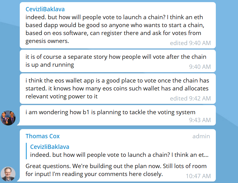 Over in EOSIO Gov, some questions arose surrounding EOS blockchain launch and Thomas Cox of block.one answered with the knowledge available: