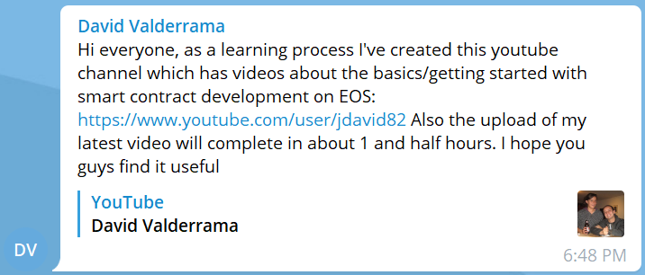 EOS Telegram Summary 2/17/18 - Iryo Dapp and David Moss
