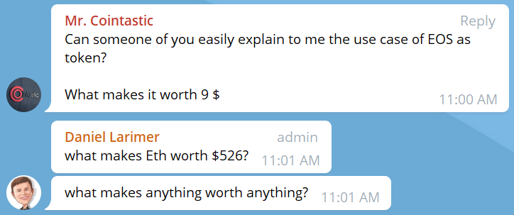 EOS Telegram Summary 4/15/18 - Sundays With Dan