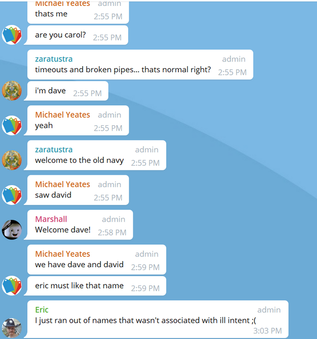 And over in the small testnet block producers channel everyone got to live vicariously through their new blockchain: