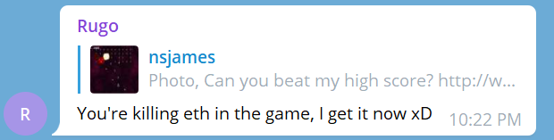 In EOS general chat, community developer nsjames announced the first game coming to EOS, through his Scatter extension: