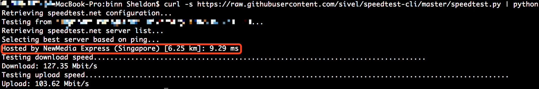 curl -s https://raw.githubusercontent.com/sivel/speedtest-cli/master/speedtest.py | python -
