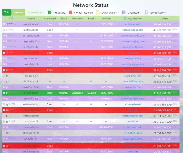 Multiple BPs are displayed as 'red' which means that their application programming interfaces (APIs) do not respond. One of the possible reasons is a DDoS attack, according to EOSUK, who writes on Twitter: "A lot of 'red' on the EOS network monitor. The EOS Mainnet crashes. "