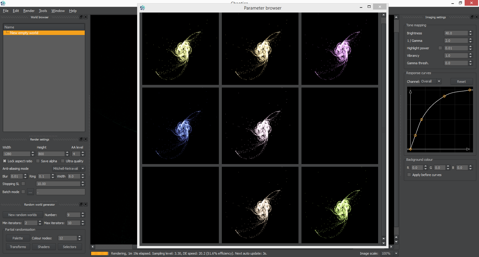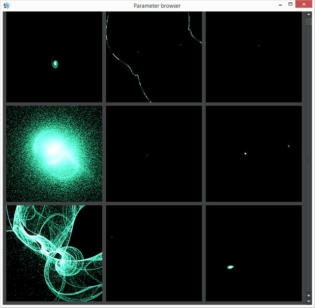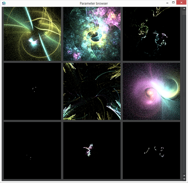 - This process can be repeated until you get a fractal you like. Or you can move on to previewing the partial randomisation under the random world generator. This gives you a grid of possible random settings and their immediate output.