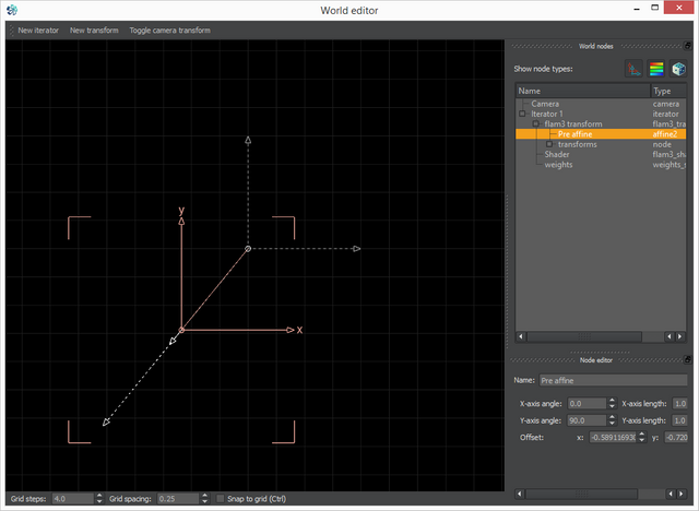 - Click on flam3 transform and, in the node editor, select add post affine.
