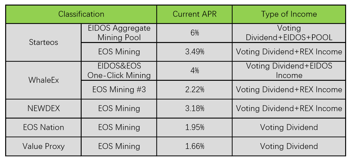 As the income of EIDOS in the Aggregate Mining Pool is about four times higher than Rex in EOS mining (the average annual income of Rex since its launch is about 0.6%, and the current annual income of Eidos is about 2.5%), there is no risk in the Aggregate Mining Pool of EIDOS through Starteos. In fact, it will not be affected by the Rex liquidity lock, and you can transfer them to Rex and redeem the resources at any time (three days to the account).