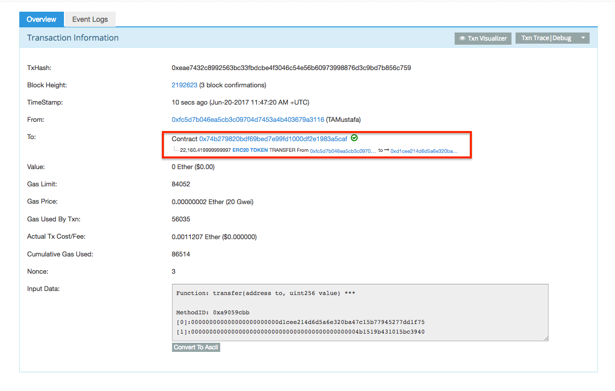 Step3: Transfer ERC20 Tokens to a different account.