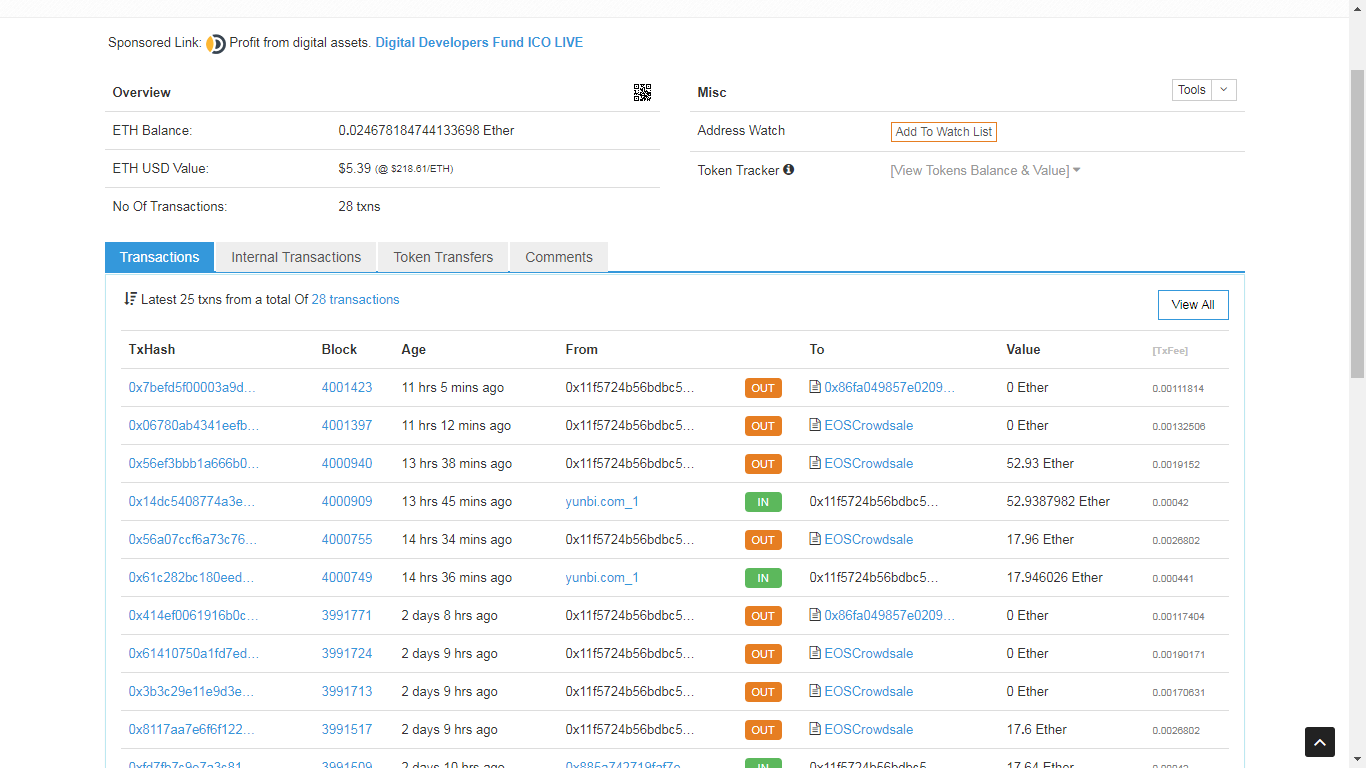 Above address is of yunbi, of course it is an exchange so many transaction may be legitimate , people buying eos from there ethers but if you look at the open the transaction which stands or above 20 ethers they trasnfer to EOS CROWDSAlE.