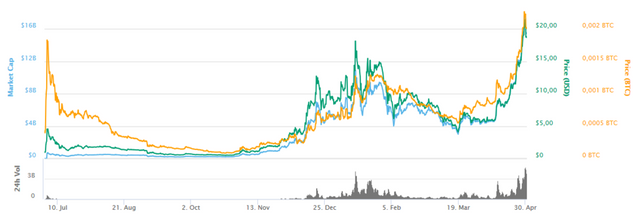 Look at this typical "mooning" graph. i am very bullish on the EOS technology and can't wait for June 30th to see it live !