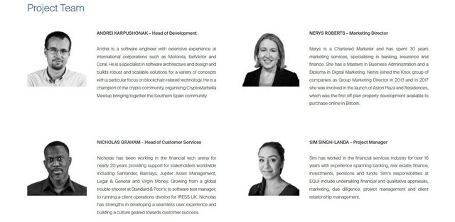 As advisors go, EQUI project has 6 advisors giving valuable both crypto and investment related advice to the project.